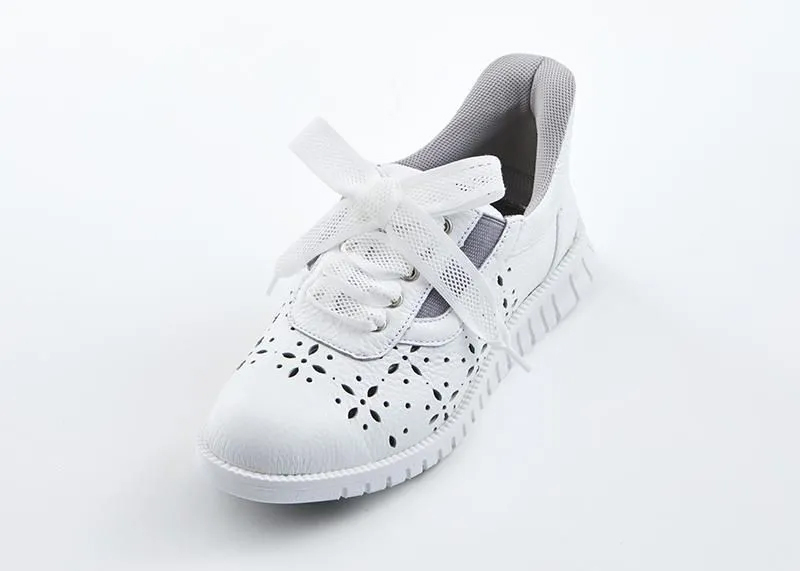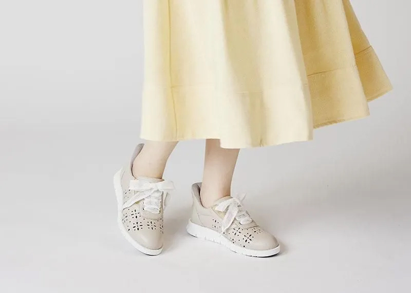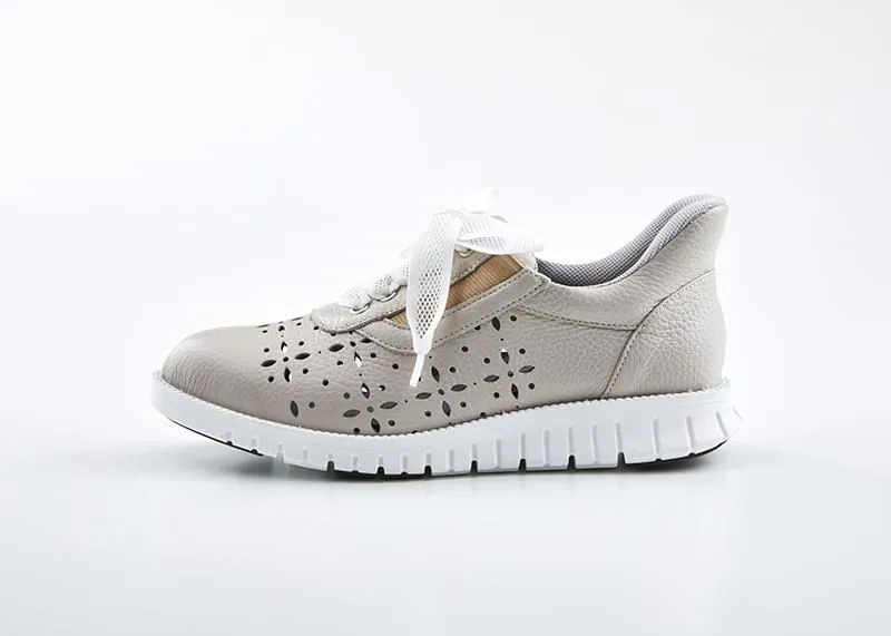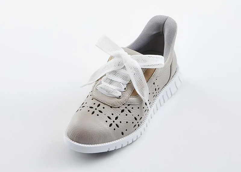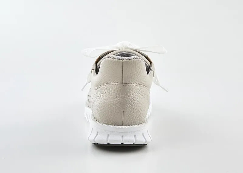 かがまず手を使わず、スムーズに履けるレザースニーカー。