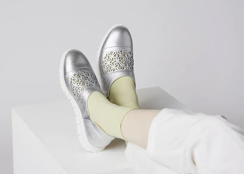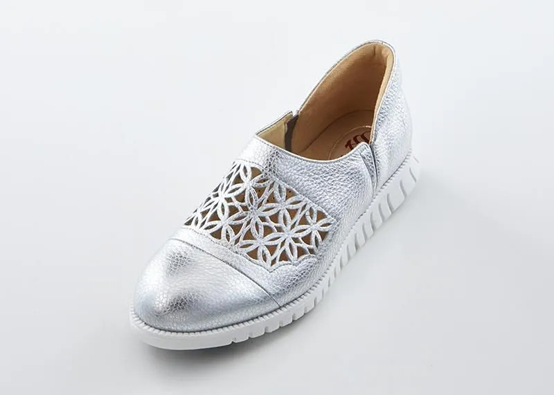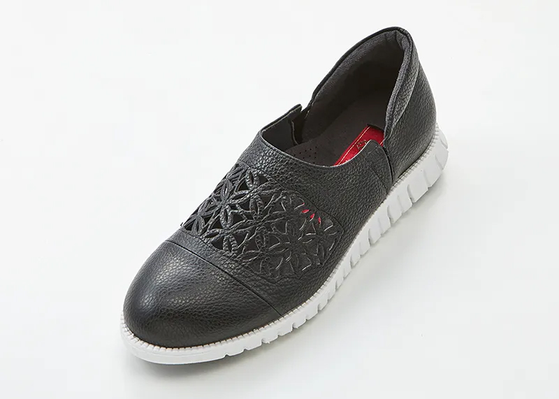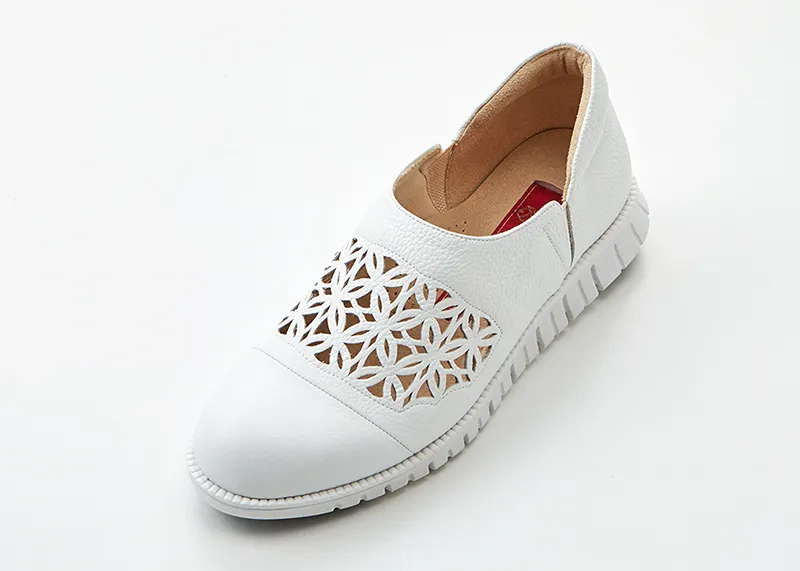 花模様のカッティングから覗く靴下の色で、おしゃれを楽しんで。